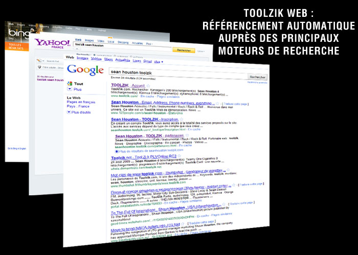 Pour être connu, mieux vaut être visible ! La création d’un ToolZik Web entraîne son référencement automatique auprès des principaux moteurs de recherche : Google, Yahoo, Bing…